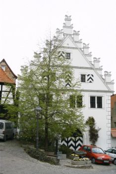 Das Bürgerhaus wurde um 1558 erbaut und in der Renaissance mit Schwalbenschwanzzinnen toskanischen Ursprungs verziert. |