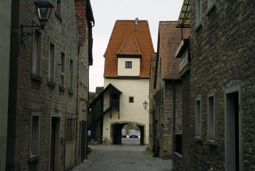 Das Friesentor wurde 1573 erbaut und ist eines der heutigen Hauptzufahrtstore in den Altort von der Mainseite her kommend. Die Herkunft des Namens geht auf den Würzburger Bischofschronisten Lorenz Fries (1489 1550) zurück. | |